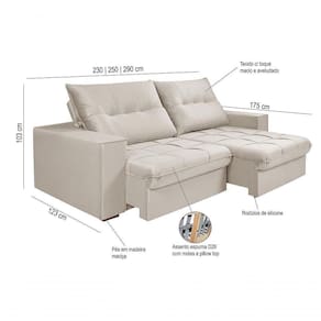 Sofá Retrátil Reclinável Cancún 2,30m com Pillow Top Veludo Sofá retrátil e reclinável com super Pillow Top, espuma D26, molas bonel e percintas italianas. Sofisticação com um design pensado para a vida contemporânea, mesclando a praticidade e o conforto para seu o dia a dia. Um estofado totalmente retrátil e reclinável, seu encosto tem o enchimento com fibra 100% siliconada, revestido no tecido veludo com toque macio e aveludado. Seu encosto reclinável em cinco posições, proporcionando-lhe mais conforto na hora do descanso. Não para por aí: seu assento retrátil conta com espuma D26 com pillow top, transformando seu sofá em uma verdadeira cama para assistir seus esporte/series/filmes favoritos.