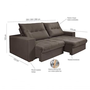 Sofá Retrátil Reclinável Cancún 2,90m com Pillow Top Veludo Sofá retrátil e reclinável com super Pillow Top, espuma D26, molas bonel e percintas italianas. Sofisticação com um design pensado para a vida contemporânea, mesclando a praticidade e o conforto para seu o dia a dia. Um estofado totalmente retrátil e reclinável, seu encosto tem o enchimento com fibra 100% siliconada, revestido no tecido veludo com toque macio e aveludado. Seu encosto reclinável em cinco posições, proporcionando-lhe mais conforto na hora do descanso. Não para por aí: seu assento retrátil conta com espuma D26 com pillow top, transformando seu sofá em uma verdadeira cama para assistir seus esporte/series/filmes favoritos.