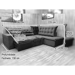 Encosto:Encosto é reclinável com Chaise fixo, e espuma 100% fibra de silicone, trazendo mais conforto para você na hora do descanso.