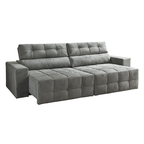 - Reclinável com cinco estágios de conforto, estrutura de madeira e compensado revestida em espuma D15, percintas elásticas, catracas 90 com trava.