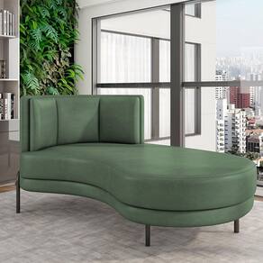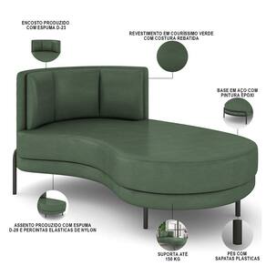 Sofá Chaise Longue Sala de Estar Living Lucca Direito D02 Couríssimo Verde B-89 - Lyam Decor