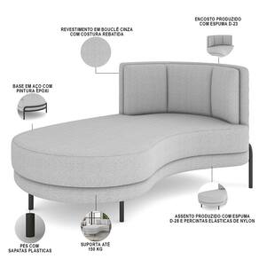 Sofá Chaise Longue Sala de Estar Living Lucca Esquerdo D02 Bouclê Cinza B-56 - Lyam Decor