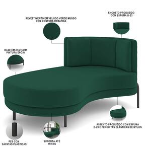 Sofá Chaise Longue Sala de Estar Living Lucca Esquerdo D02 Veludo Verde C-303 - Lyam Decor