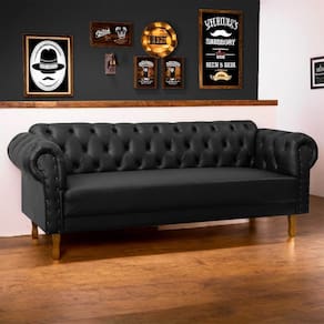 Sofá Chesterfield 160cm para Barbearia e Recepção Capitonê Corino Preto - SOFA STOREEleve o conforto e o estilo da sua sala ou recepção com nosso sofá clássico Chesterfield! Fabricado com espuma D28 de alta densidade, este sofá oferece o máximo de conforto.O revestimento sintético de qualidade não só garante um visual sofisticado e luxuoso, mas também proporciona uma sensação única e requintada ao toque. Renove sua sala de estar com luxo e comodidade incomparáveis. Não perca tempo, leve já para casa o seu sofá dos sonhos!CARACTERÍSTICAS DO PRODUTO:- Estofamento: Espuma D28 e fibra siliconizada;- Revestimento: Sintético;- Estrutura: Madeira de eucalipto de reflorestamento;- Pés modelo Luís XV em madeira maciça;- Acabamento com taxinhas nos braços;- Modelo trabalhado em capitonê;DIFERENCIAS:- Produto de alta qualidade;- Design clássico;- Costura resistente;- Estrutura segura;- Para a limpeza, recomendamos utilizar pano levemente úmido e detergente neutro.DIMENSÕES: Largura: 160 cmAltura: 75 cmProfundidade: 75 cmAltura do piso até o assento: 45 cmPeso: 15 kgVOLUMES, MONTAGEM E GARANTIA:- Uma unidade por embalagem;- O produto chegará montado, sendo necessário apenas rosquear os pés nas marcações (não utiliza ferramentas);- Garantia do fabricante: até 90 dias corridos após o recebimento, contra defeitos de fabricação;INFORMAÇÕES IMPORTANTES:- A entrega do produto é realizada em todo território nacional, até onde as rodovias alcançam.- Objetos decorativos que aparecem na foto não acompanham o produto;- Pode haver diferença de tonalidade entre a imagem e o produto real, por conta de lote de tecido, tratamento de imagens e a calibração de cores do seu monitor;- Por se tratar de estofado as medidas podem ter uma variação em até 3 cm;- Confira as dimensões do produto e certifique-se de que passará normalmente por elevadores, portas, escadas e/ou corredores de sua residência, já que nossa entrega não inclui a subida de lances de escada, ou o içamento de produtos; Marca: Sofa Store