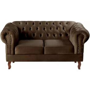 Sofá Chesterfield 2 Lugares Dom Pedro Vintage Retrô Capitonê Veludo Marrom