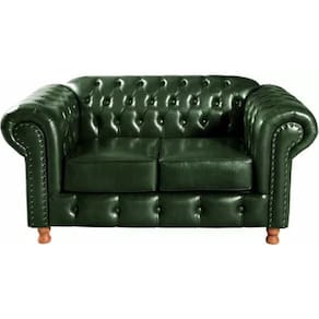 Sofá Chesterfield 2 Lugares Luís XV Vintage Retrô Capitonê Couro Verde