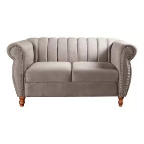 Sofá Chesterfield 2 Lugares Realeza Vintage Retrô Veludo Capuccino