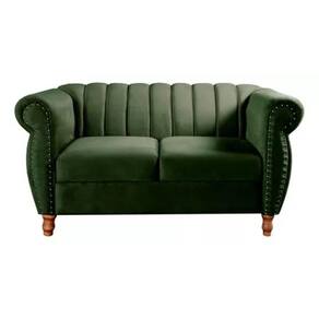 Sofá Chesterfield 2 Lugares Realeza Vintage Retrô Veludo Verde