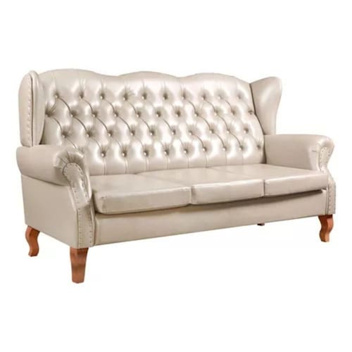 Sofá Chesterfield 3 Lugares Imperador Vintage Retrô Capitonê Couro Bege