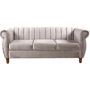 Sofá Chesterfield 3 Lugares Realeza Vintage Retrô Suede Bege Claro
