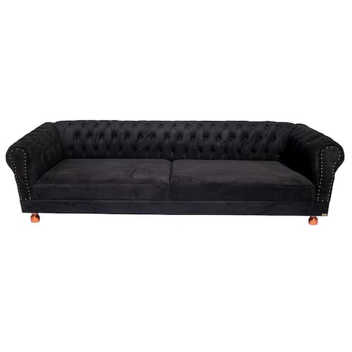 Braços: Almofadas fixas com capitonê, compostas por espuma D26 Soft de 05cm sob uma trama de percinta elástica Italiana.