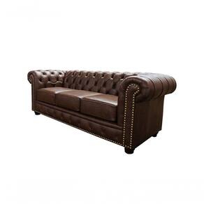 Sofá Chesterfield De Couro 3 Lugares Marrom Bicolor - Mempra