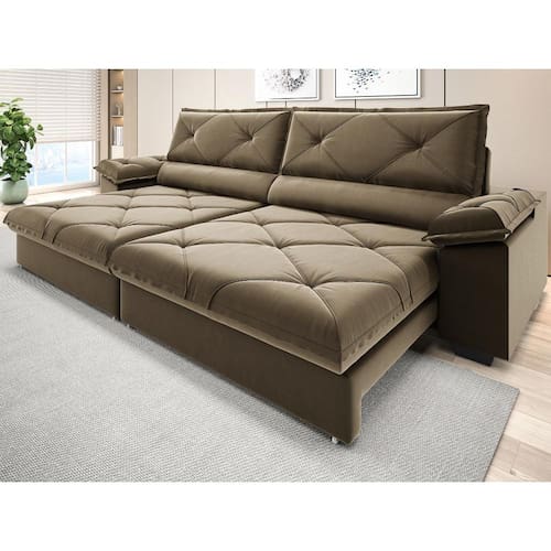 Sofá com Carregador USB e Molas no Assento Retrátil Reclinável Maestro 2,10m Veludocristal - NETSOFAS - Marrom