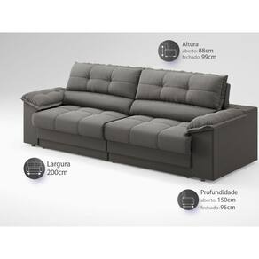 Sofá com Carregador USB e Molas no Assento Retrátil Reclinável Mimo 2,00m Velosuede - NETSOFAS - Cinza