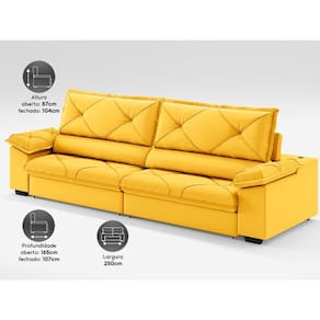 USB:Sofá com uma tomada contendo duas entradas USB para carregamento de eletrônicos, potência de 5V.Não incluso fonte de energia. Extensão do cabo da tomada pode variar de 70cm a 90cm.