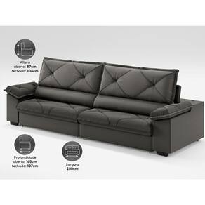 USB:Sofá com uma tomada contendo duas entradas USB para carregamento de eletrônicos, potência de 5V.Não incluso fonte de energia. Extensão do cabo da tomada pode variar de 70cm a 90cm.