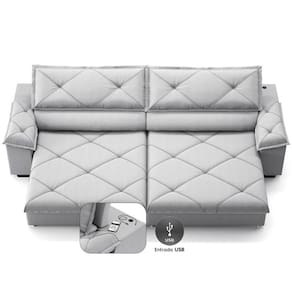 USB:Sofá com uma tomada contendo duas entradas USB para carregamento de eletrônicos, potência de 5V.Não incluso fonte de energia. Extensão do cabo da tomada pode variar de 70cm a 90cm.