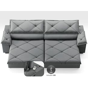 USB:Sofá com uma tomada contendo duas entradas USB para carregamento de eletrônicos, potência de 5V.Não incluso fonte de energia. Extensão do cabo da tomada pode variar de 70cm a 90cm.