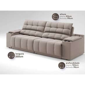 Porta Copos:Sofápossui quatro porta copos fixos (dois em cada braço). As dimensõesdo porta coposão aproximadamente10cmx5cm