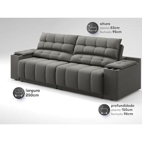 USB:Sofá com uma tomada contendo duas entradas USB para carregamento de eletrônicos, potência de 5V.Não incluso fonte de energia. Extensão do cabo da tomada pode variar de 70cm a 90cm.