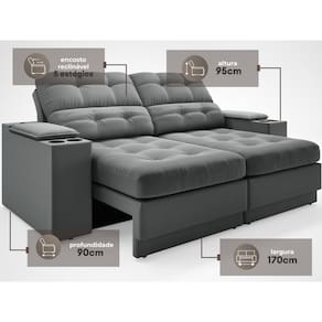 Os objetos que ambientam as fotos não acompanham o produto.Verifique as dimensões do produto e certifique-se que o percurso que ele fará até o local de uso permite sua passagem. Nós não nos responsabilizamos por transporte de produtos, caso não caibam em elevadores, acima de três lances de escada e não cabendo na passagem das escadas, por içamentos ou desmontagens de produtos. Quaisquer despesas deste tipo ficam a cargo do cliente.Sofá com Porta Copos. Possuem porta copos fixos no braço. As dimensões do porta copos são aproximadamente10cm x 5cmReservamo-nos o direito de possíveis erros de digitação. Anúncio sujeito a alteração sem aviso prévio.Antes da entrega, nossos produtos passam por um rigoroso controle de qualidade para que cheguem até o cliente em perfeitas condições, entretanto, em casos de desacordo com o proposto, o comprador deverá contatar o nosso SAC e/ou a loja onde a compra foi efetuada.O prazo para solucionar os problemas identificados é de até 30 dias úteis, contados a partir da data do posicionamento do SAC com o comprador.Sofá com USB. Tomada com duas entradas USB, extensão do cabo é de 70cm a 90cm podendo sofrer variação, dependendo do modelo.