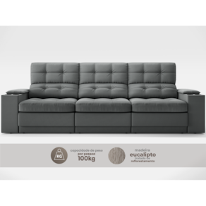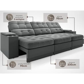 USB:Sofá com uma tomada contendo duas entradas USB para carregamento de eletrônicos, potência de 5V.Não incluso fonte de energia. Extensão do cabo da tomada pode variar de 70cm a 90cm.