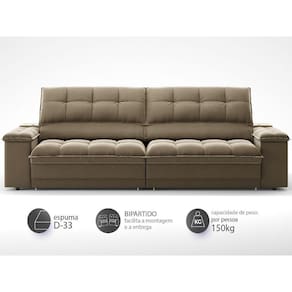 Porta Copos: O sofá possui quatro portas copos fixos (dois em cada braço). As dimensões do porta copo são aproximadamente 10cm x 5cm