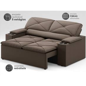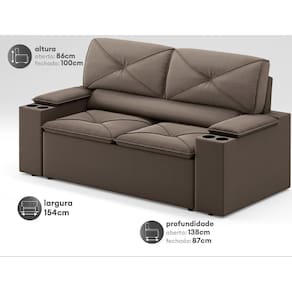 Sofá com Porta Copos Retrátil e Reclinável Pop 1,54m Velosuede - NETSOFAS - Marrom