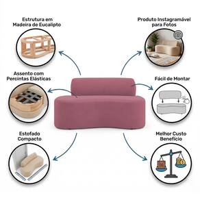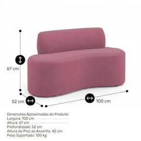 - Modelo versátil que pode ser utilizado como sofá compacto, puff com encosto ou namoradeira