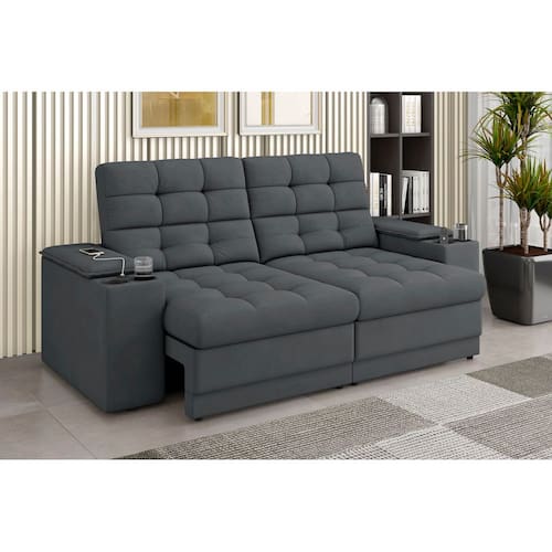 Espaço Inteligente: Com um design retrátil, este sofá é uma solução versátil para otimizar o espaço da sua sala. Ganhe espaço quando precisar, e, quando quiser relaxar, estenda o assento com facilidade. Uma combinação de funcionalidade e elegância.