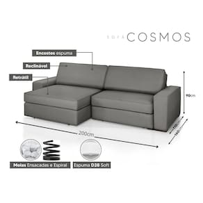 O Sofá Cosmos apresentam um design elegante, ao mesmo tempo que oferecem robustez e dimensões generosas, tornando-os a escolha perfeita para criar um ambiente moderno e sofisticado na sua sala de estar ou home cinema, proporcionando conforto excepcional para toda a família. Disponíveis em uma ampla variedade de cores e tecidos, esse estofado se adaptam facilmente a diferentes estilos de decoração. Seu assento é cuidadosamente preenchido com espuma, garantindo conforto e durabilidade. A estrutura é fabricada em eucalipto, oferecendo excelente resistência e durabilidade ambientalmente consciente.