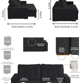 Sofá Curitiba Modular 5 Lugares 2.50 MT Retrátil e Reclinável - Preto
