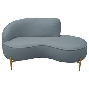 Sofá Curvo 3 Lugares 180cm Braço Dir. Thommy Pés Ouro Bouclé Azul Claro - Nexta Casa