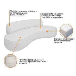 Sofá Curvo 3 Lugares Sala De Estar Recepção Escritório Amsterdã 200cm Corano - Adj Decor Cor Branco