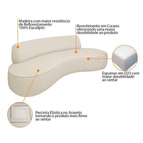 Sofá Curvo 3 Lugares Sala De Estar Recepção Escritório Amsterdã 200cm Corano - Doce Sonho Móveis Cor Bege