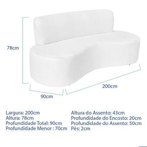 Sofá Curvo 4 Lugares Amsterdã 200cm Suede Cor Branco