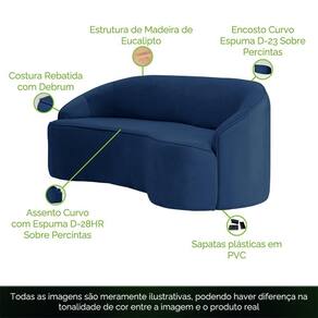 Características do Produto:Material da Estrutura: Madeira de EucaliptoMaterial do Assento: Espuma sobre Percintas D-26 HRMaterial do Encosto: Espuma sobre Percintas D-23Material dos Pés: Sapata plástica de PVCTipo de Pés: FixoEncosto/Assento: Curvo com design orgânicoRevestimento: VeludoPeso Suportado: Até 100 kg por assento