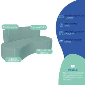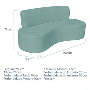 Sofá Curvo Orgânico Escritório Recepção 4 Lugares Amsterdã 200cm Suede Cor Azul Tiffany