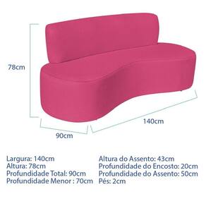 Sofá Curvo Orgânico Escritório Recepção Sala 2 Lugares Amsterdã 140cm Suede Cor Pink - Rosa