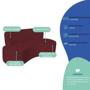 Sofá Curvo Orgânico Escritório Recepção Sala 2 Lugares Amsterdã 140cm Suede Cor Suede Bordô