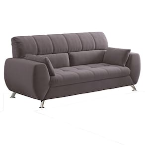Com 204cm de largura, 96cm de altura e 90m de profundidade, o sofá da Linoforte tem o encosto fixo em fibra de poliéster siliconizada e cada assento com capacidade para suportar até 120kg. Há ainda os pés em metal cromado e o móvel vai acompanhado de duas almofadas.