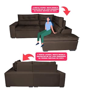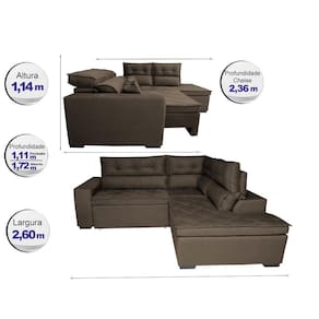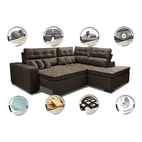 Sofá de Canto 2,60x2,36m Retrátil e Reclinável com Molas Cama inBox Platinum. Direito Suede - Marrom