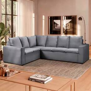 Com um design em formato de L que otimiza o ambiente, esse sofá é a escolha perfeita para quem busca praticidade e elegância. Confira mais detalhes: