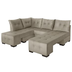Muito versátil, o Sofá de Canto American Comfort possui revestimento em tecido suede pena, material que proporciona maciez e toque suave, aumentando a sensação de conforto.