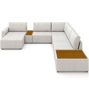 Transforme a sua sala de estar com o Sofá de Canto com Chaise e Mesa Lateral Sala de Estar Living 347cm Gales M03 Linho Cru, da Lyam Decor. Esse sofá moderno é perfeito para criar um ambiente sofisticado e acolhedor na sua casa.