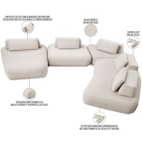 Composição com 4 módulos: 1 chaise, 1 assento, 1 canto, 1 diagonal.