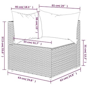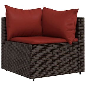 - Cor: marrom- - Cor da almofada: vermelho canela- - Material: rattan PE, aço revestido a pó, tecido (100% poliéster) - - Material de enchimento: espuma, fibra de algodão- - Dimensões: 24,8" x 24,8" x 22,6" (L x P x A) - - Tamanho do assento: 21,7" x 21,7" (L x P) - Altura do assento em relação ao chão: 12,2"- - Almofada de assento dimensões do travesseiro: 21,7" x 21,2" (L x P x T) - - Tamanho do travesseiro (grande): 24" x 15" (L x P) - - Tamanho do travesseiro (pequeno): 18,1" x 15" (L x P) - - Pés ajustáveis - - A entrega contém: - - 1 x sofá de canto - 1 x almofada de assento - 1 x travesseiro grande Almofada pequena - California Proposition 65