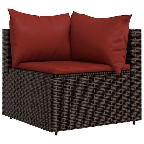-?Design moderno?: O sofá vidaXL Patio Corner possui um design elegante e contemporâneo que certamente aprimorará qualquer espaço ao ar livre. O lindo rattan marrom e as vibrantes almofadas vermelho-canela contribuem para seu apelo estético.