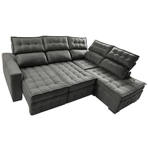 Sofá De Canto Direito 2,65x2,30m Retrátil E Reclinável Com Molas Enadas Cama Inbox Nobre Cinza
