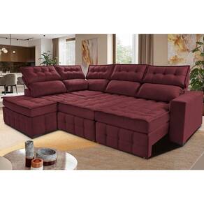 Sofá De Canto Esquerdo 2,65x2,30m Retrátil E Reclinável Com Molas Ensacadas Cama Inbox Nobre Vinho